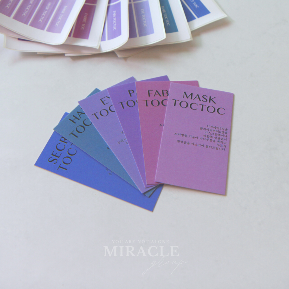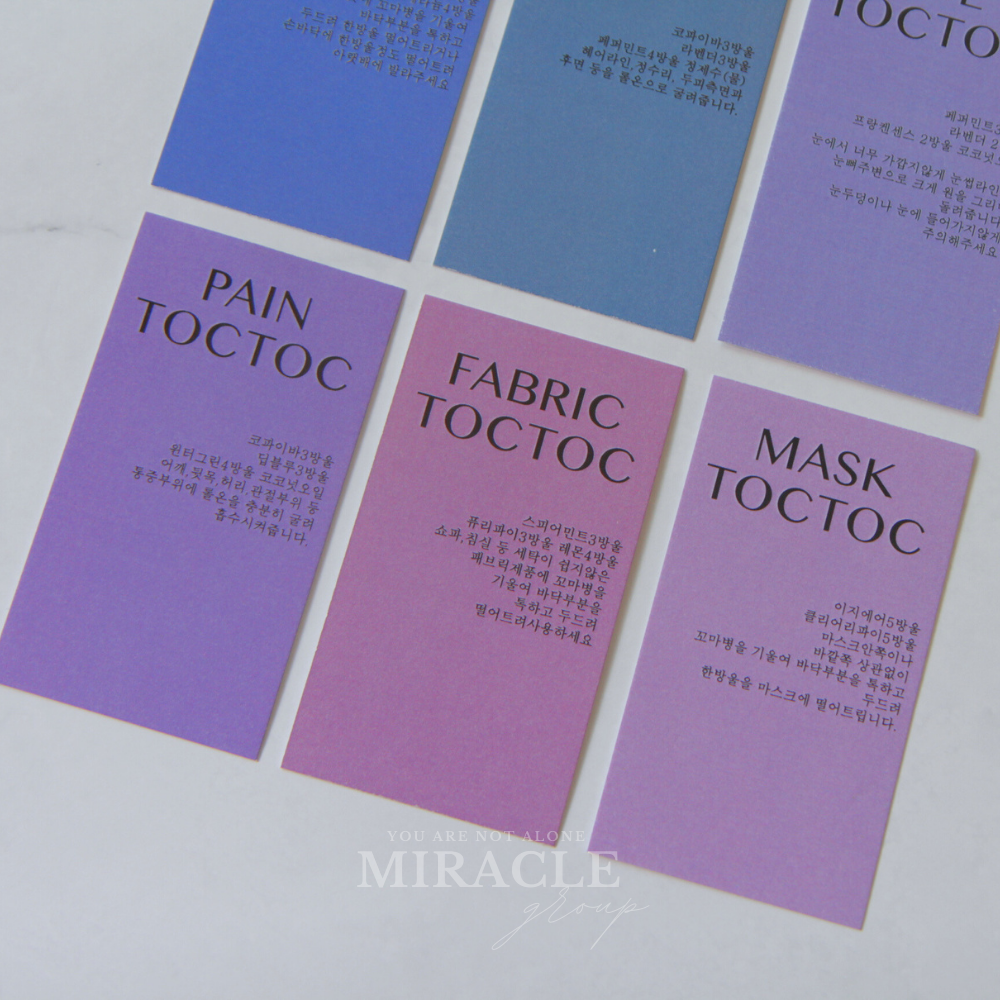 종류: Mask TocToc / Eye TocToc / Pain TocToc / Secret TocToc / Hair TocToc / Fabric TocToc