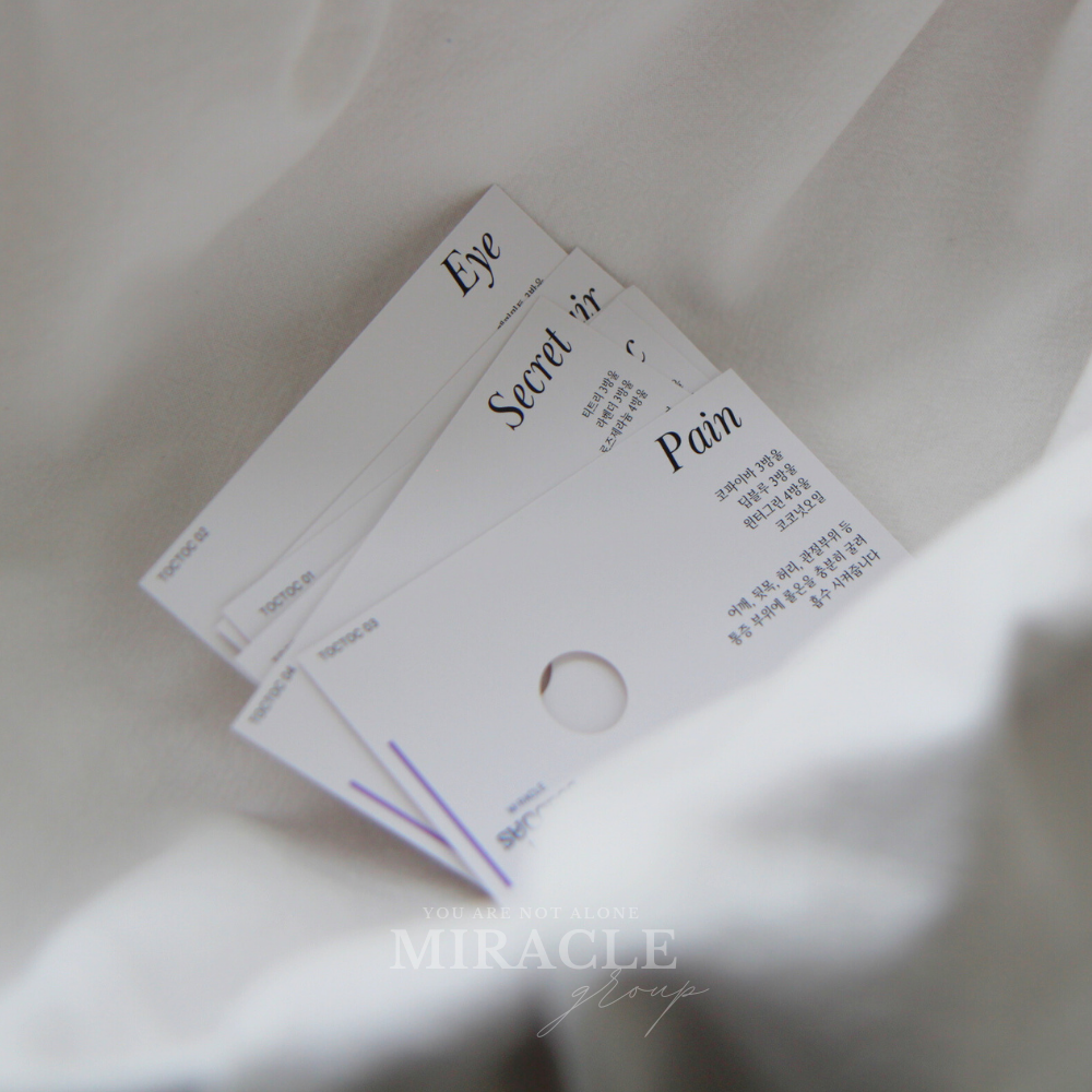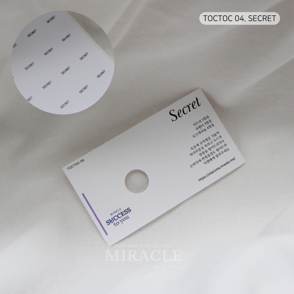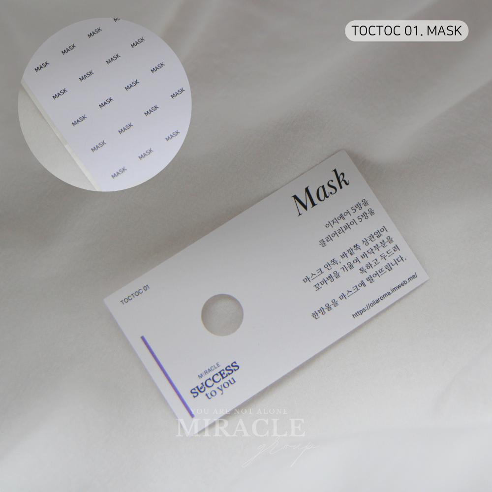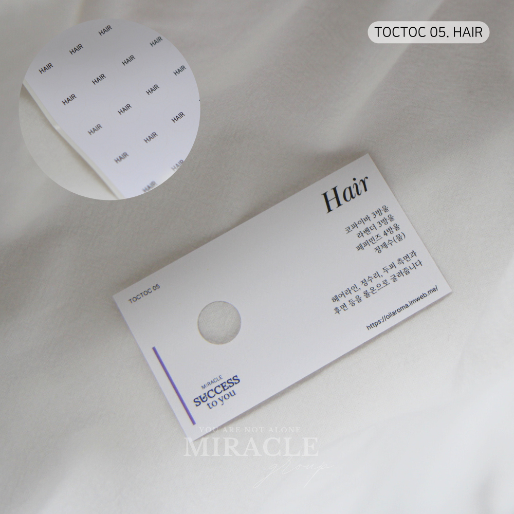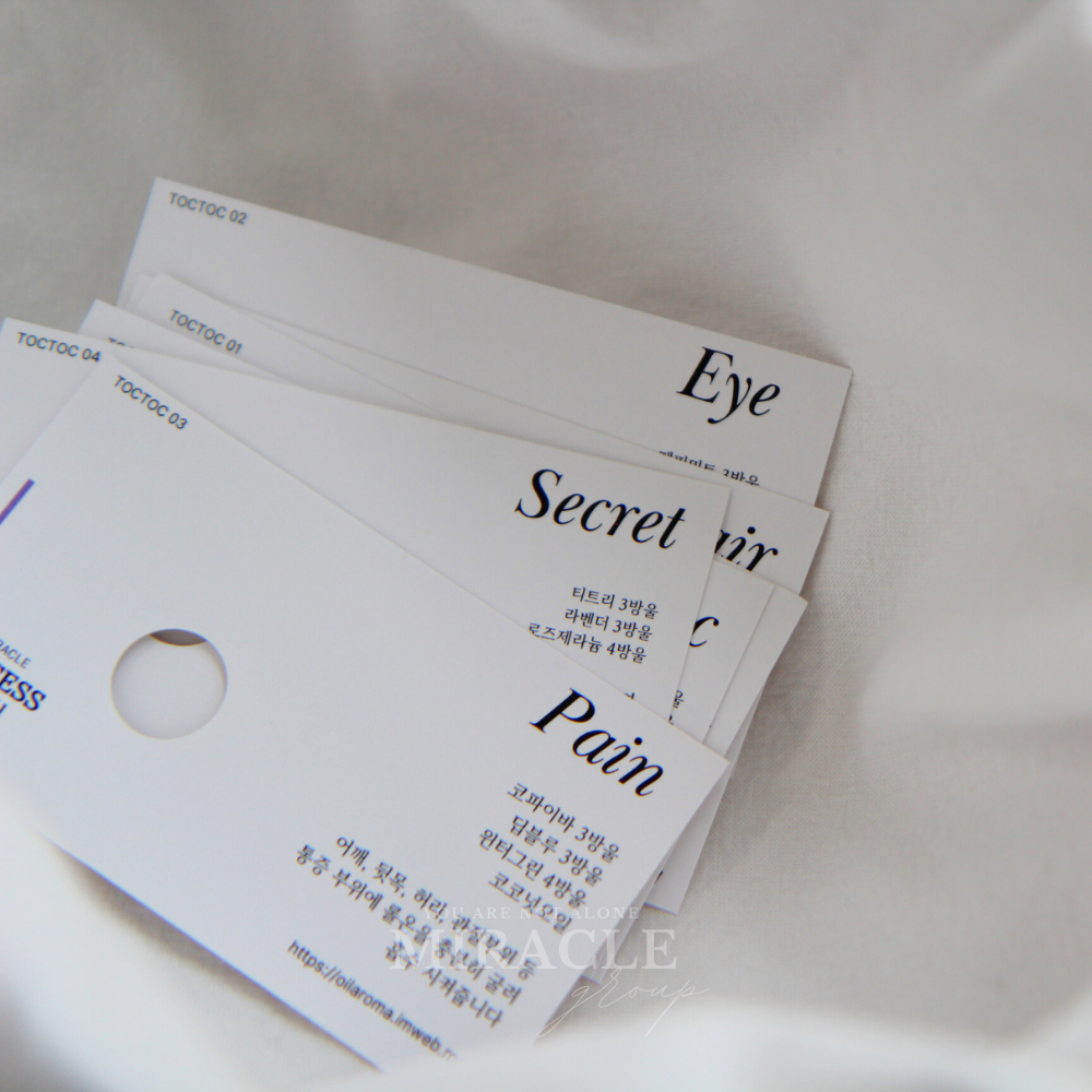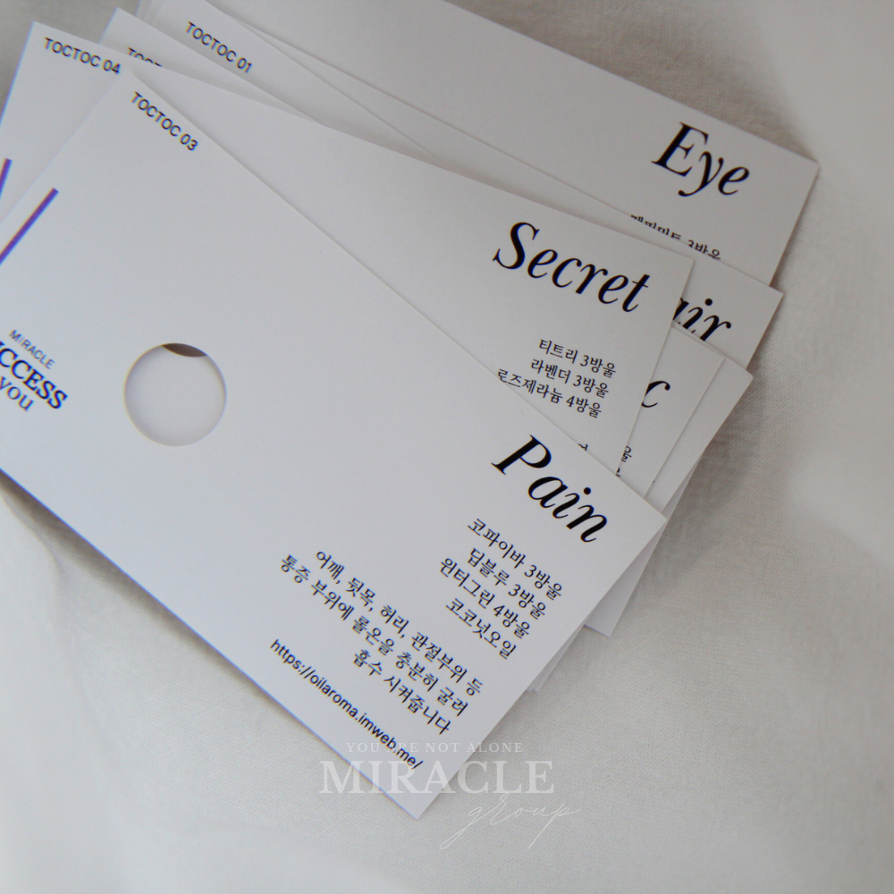 각 톡톡 카드에는 시리즈별 오일 블렌딩 레시피가 깔끔하게 표기되어 있으며,