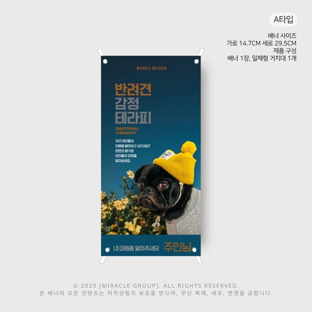 A type : 배너사이즈 가로 14,7cm 세로 29.5cm / 제품구성 배너 1장, 일체형 거치대 1개