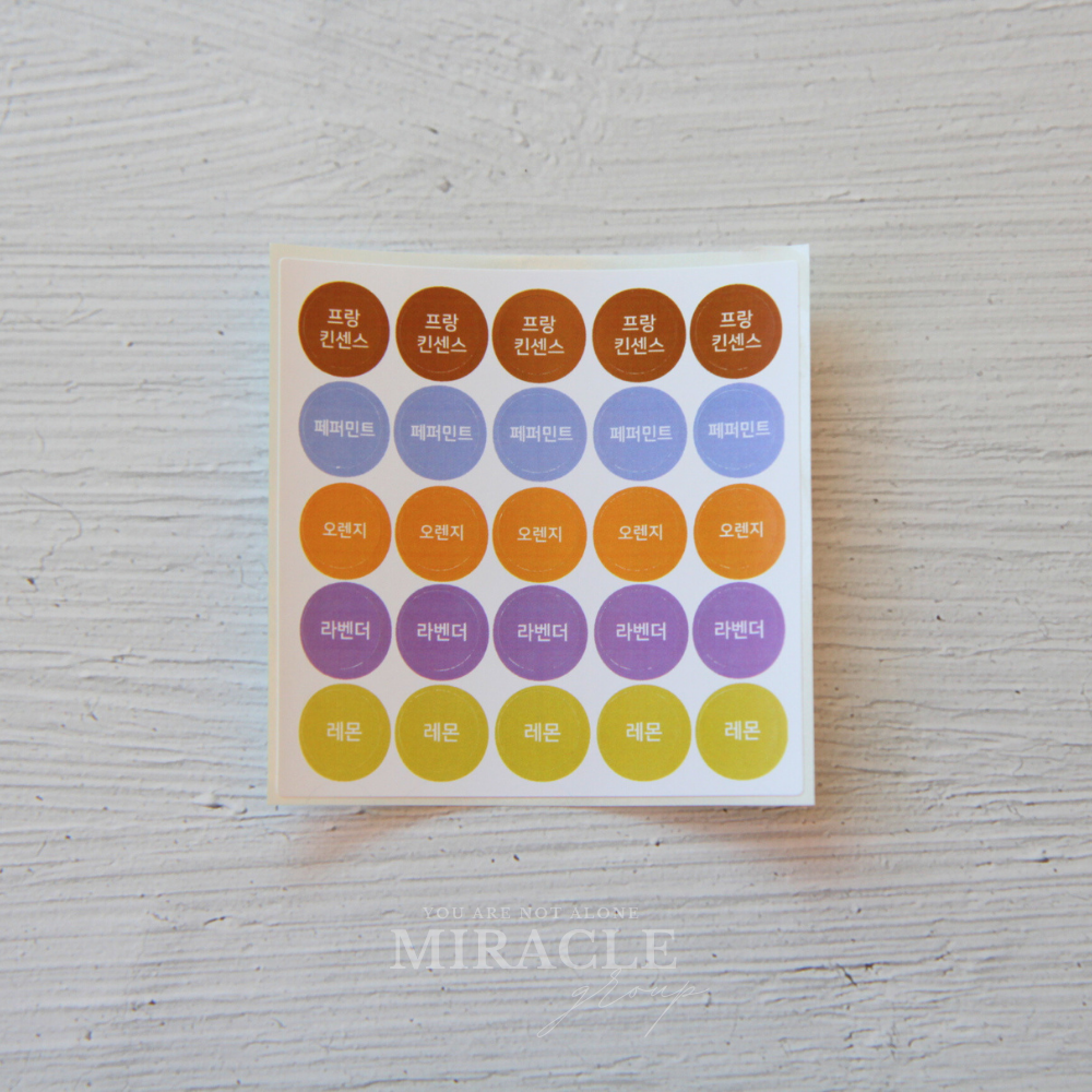 샘플도트스티커 5종 : 오렌지,라벤더,프랑킨센스, 레몬, 페퍼민트