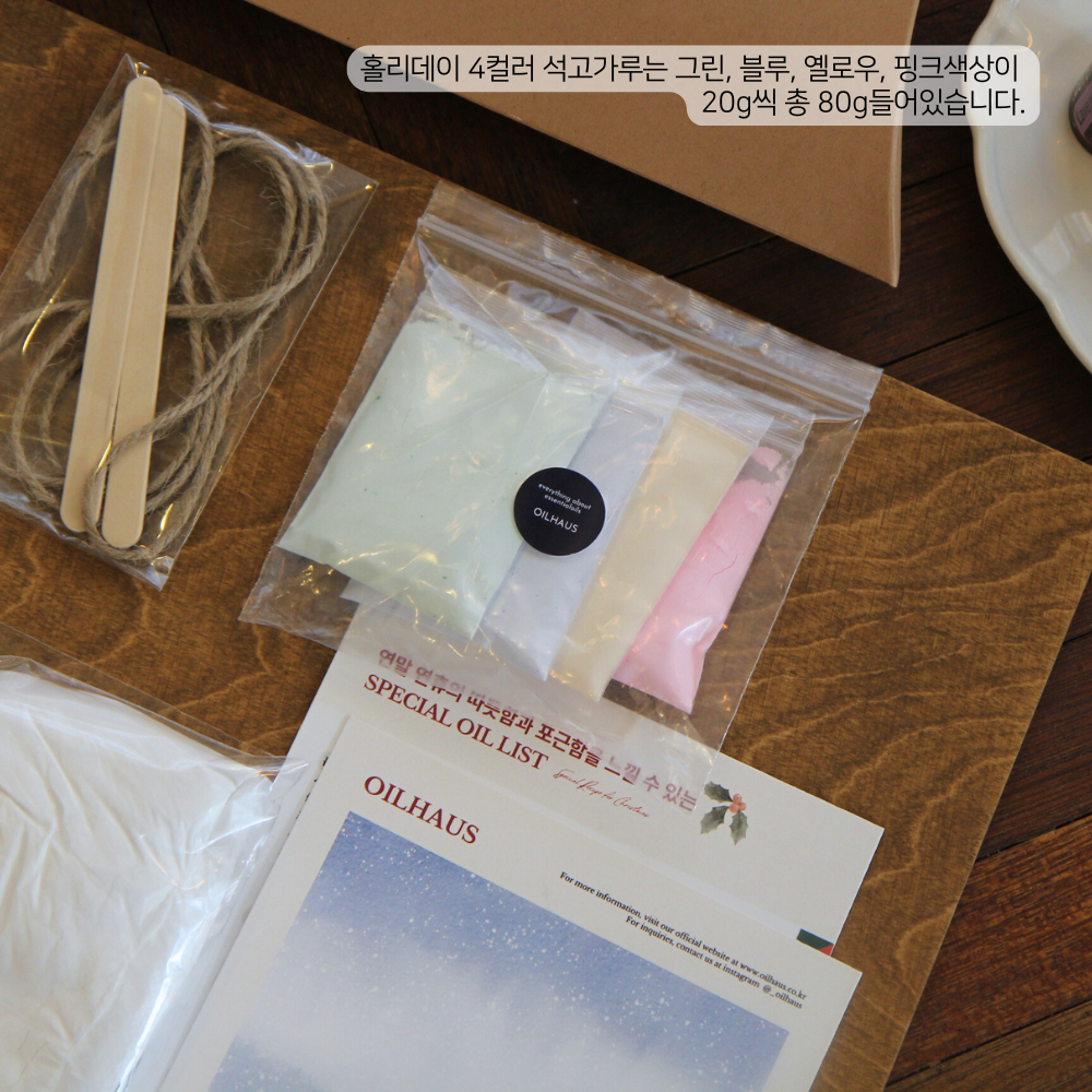 *마진을 줄이고자 석고가루의 용량을 홀리데이 센트 참 5종 제작에 맞게 정확하게 구성하였습니다. 5개 이상 제작을 원하시는 분들은 옵션에서 추가로 석고가루를 선택해주세요.